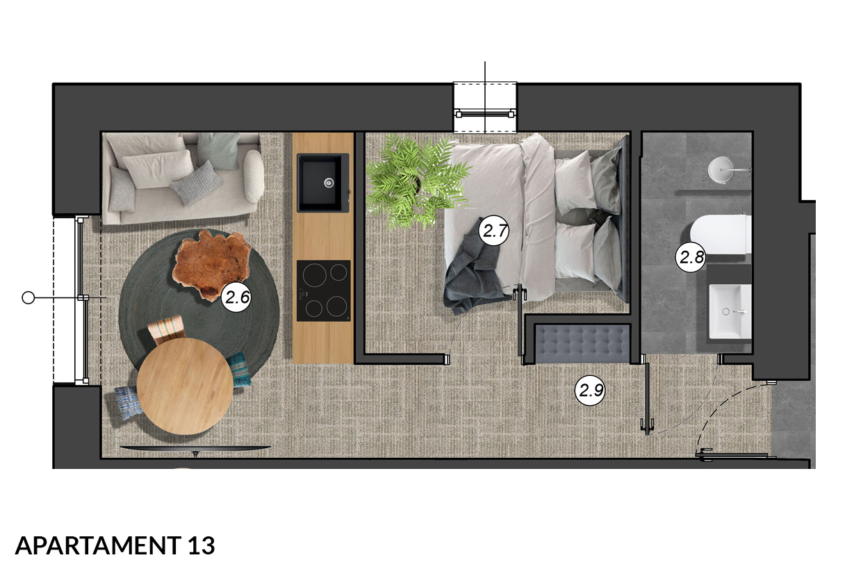 każdy apartament wyposażony jest w nowoczesny telewizor,