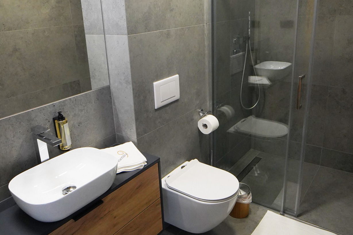 1 łazienka z deszczownicą / toaletą, suszarką do włosów, umywalką,