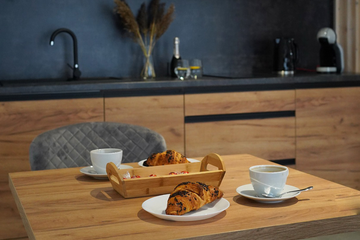 kuchnia w pełni wyposażona w wysokiej jakości sprzęt AGD,